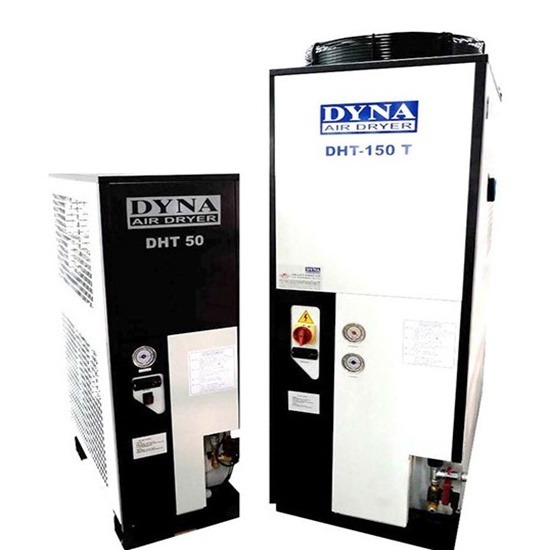 บริษัทขายเครื่องทําลมแห้ง REFRIGERATED AIR DRYER เครื่องทำลมแห้ง DYNA Compressor สินค้าจากประเทศเยอรมัน ลูกค้าสามารถวางใจในระดับมาตรฐานคุณภาพของเราได้เสมอ เครื่องทำลมแห้ง Air Dryer ราคถูก เครื่องทำลมแห้งมีความจำเป็น และมีความสำคัญไม่น้อยกับการใช้ง่ายควบคู่กับเครื่องอัดลม เนื่องจากอุปกรณ์ ชิ้นส่วนและชิ้นงาน อาจได้รับความเสียหายจากละอองน้ำที่เกิดขึ้นในกระบวนการผลิตลม  DYNA COMPRESSOR (SCREW AIR COMPRESSOR) เป็นเครื่องทำลมแห้ง (AIR DRYER) สามารถจำกัดน้ำในระบบซึ่งมีประสิทธิภาพสูงเนื่องจากมีชุดระบายความร้อน (AFTER COOLER) เสริมอีกชุดหนึ่ง สามารถกำจัดน้ำในระบบลมได้ถึง 99.9% ให้อุณหภูมิลมที่ผ่านออกมาเย็น อุณหภูมิสูงสุดที่สามารถนำเข้าได้ 80 องศาเซลเซียส อุณหภูมิจุดไอน้ำกลั่นตัว 1.6℃ แรงม้าเครื่องอัดอากาศ 3 - 600HP